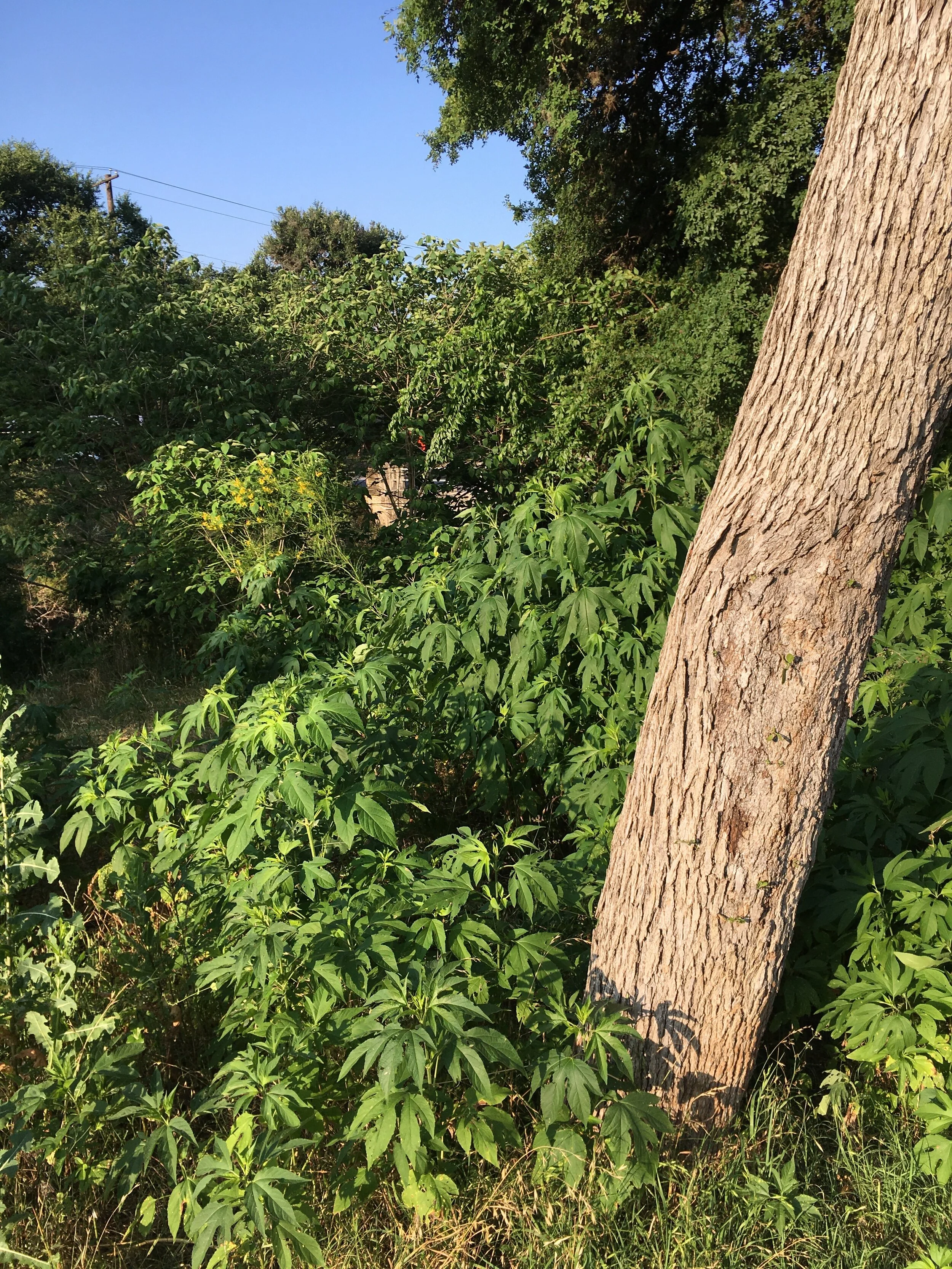 An oak tree in the dog park, surrounded by ragweed. Picture taken before DIY.
