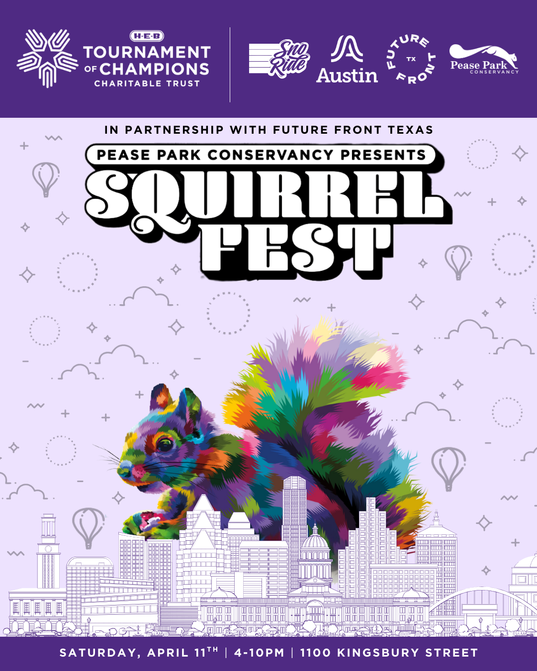 Squirrel Fest is Austin’s favorite family-friendly celebration of spring presented by H-E-B Tournament of Champions and created by Pease Park Conservancy and Future Front Texas!